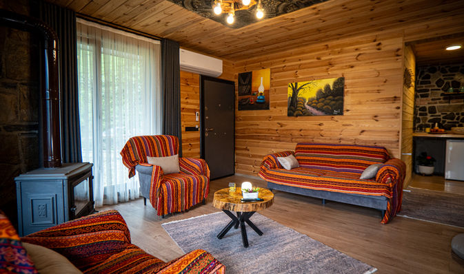 1+1 Oturma Salonu & Oda & Banyo, Jakuzi, Klima, Ayrı Banyo, Camlı Kuzine, Serpme Kahvaltı, Çay Kahve İkramı, Meyve ve Çerez Tabağı.